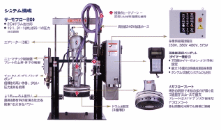 | ウォームメルトやホットメルト用材料を200℃の高温で200Lドラム缶から1ヶ所または複数の吐出場所へ大流量で移送するために設計されたポンプです。 |
